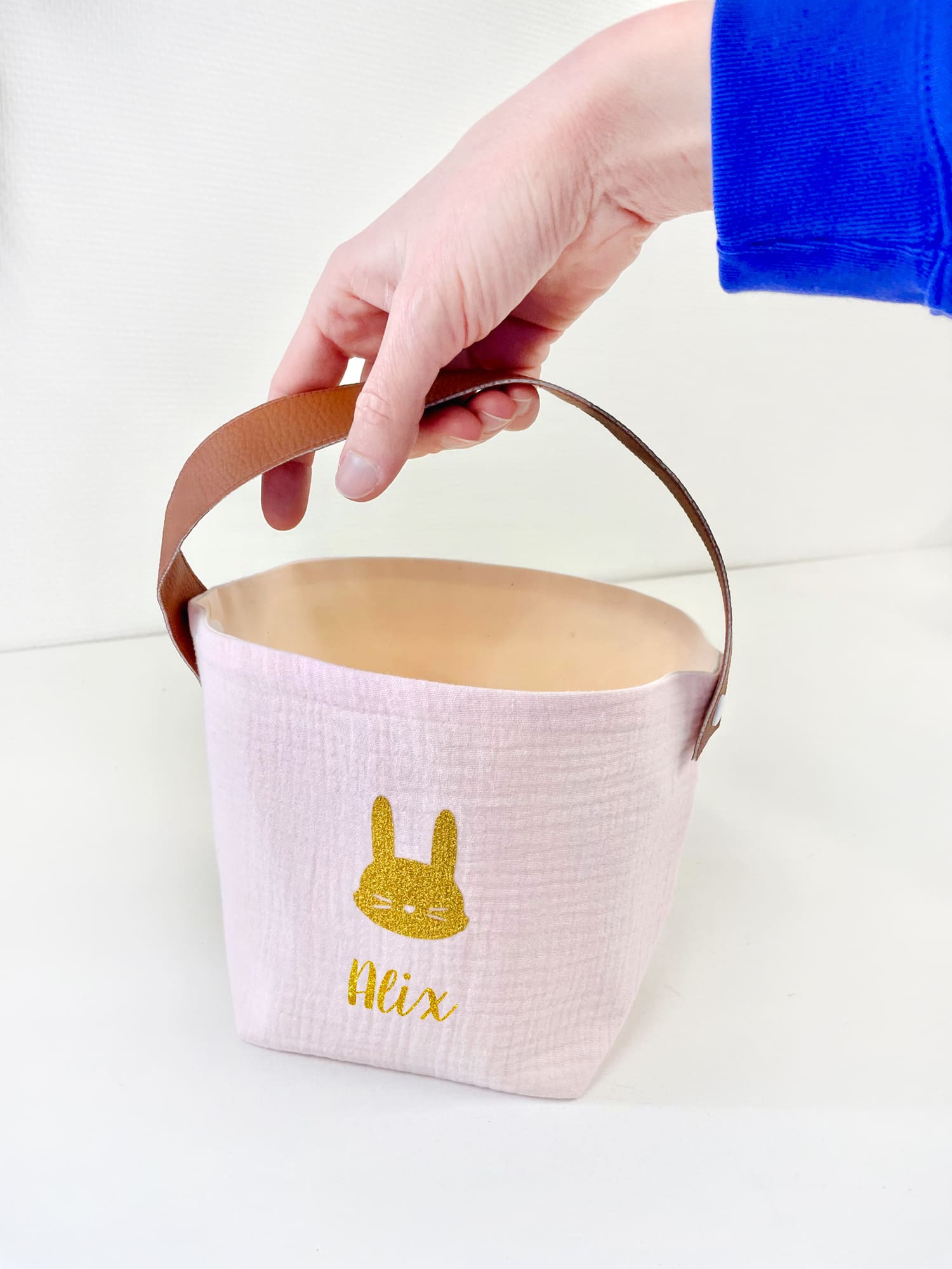 Ce petit panier est personnalisable avec un prénom.